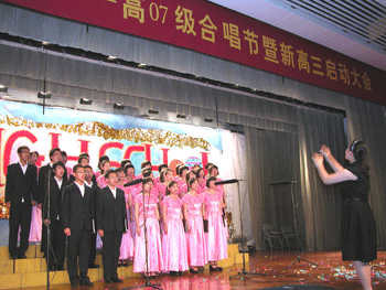 新高三启动仪式后,高07级各班进行了合唱比赛,同学们在《相信我们会创造奇迹》的歌声中开启了新高三的航程。