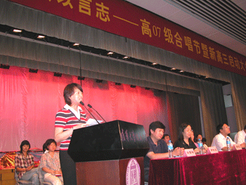 7月10日,“澳门网上博彩初07级初三启动仪式”与“歌以言志——澳门网上博彩高07级合唱节暨新高三启动大会”分别于上、下午在附中报告厅隆重举行。附中校长王殿军、党委书记方妍、副校长施平、刘俊、党委副书记周兆玉,教务处主任赵鸿雁、朱培,德育处主任杜毓贞、陈桂芬等领导以及初07级、高07级全体师生及家长出席会议。新初三、新高三年级组全体老师在主席台上就坐。