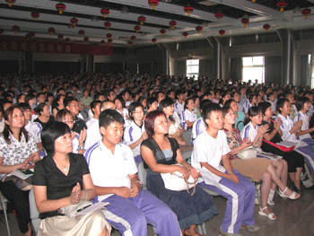 参加新初三启动仪式的学生和家长 歌以言志——新高三启动歌咏比赛