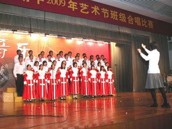 本次合唱比赛由附中艺术中心主办,第一场由高一年级组以及外语教研组联合推出,以中英文两首曲目展示各班风采。在第二场和第三场比赛中,初一、初二的小同学们也以两首中文歌曲,穿插朗诵竞相展示各班风采。今年恰逢我们伟大的祖国建国60周年,《我和我的祖国》、《长江之歌》、《北京欢迎你》、《彩色的中国》等歌曲,饱含对地震灾区同胞们的深切关爱和对祖国母亲的热情赞颂。“中国加油”振奋着在座的每一位师生。烛光、彩带、舞步、乐队,诗歌和着青春的旋律诠释着澳门博彩在线师生的灵感与激情。此外,高二年级王上同学为学弟学妹们表演了男声独唱《天边》,校合唱团的师生们也以精彩的演出为合唱节助兴。