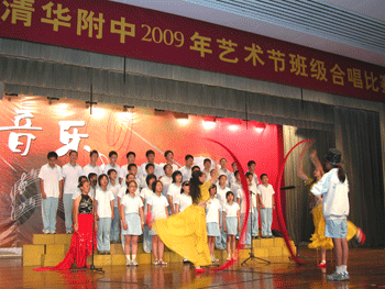 5月21日、31日、6月1日,“澳门博彩在线2009年艺术节班级合唱比赛”分别举行了高一、初二、初一年级三场比赛。校长王殿军出席,并在首场比赛伊始发表致词,殷切祝愿同学们通过此次合唱活动,获得艺术的滋养,文化学科的延伸体验以及班级凝聚力的感染。德育处杜毓贞主任、陈桂芬副主任,年级组长及各班主任、有关学科教师等也出席此次活动。附中艺术中心鞠红、李冰、胡军老师,心理中心陈明秋、谭晨老师及高一外语组老师等分别担任各场次的评委。