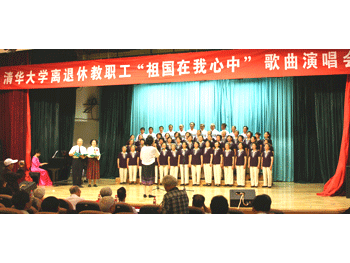 6月16日上午,清华大学离退休处在蒙民伟楼举办“祖国在我心中”演唱会,迎接新中国诞生60周年的伟大节日。附中离退休老同志合唱团参加演出,并以最强大的阵容、最振奋的精神面貌、最富激情的表演获得最佳演唱奖。