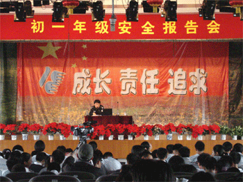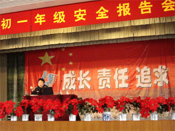 4月16日,澳门博彩在线初一年级组邀请海淀交通支队的周杰警官来校做安全报告,全年级学生及班主任共500多人参加。周警官的报告共包括三部分:首先阐述了交通安全的重要性,特别是驾驶汽车时一定要安全带与安全气囊同时使用,并提醒同学们即使坐在副驾驶位置也一定要佩戴安全带;其次周警官向同学们介绍了日常生活中比较常见的交通违章行为;最后向同学们介绍几种避免交通事故的预防措施。