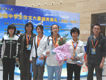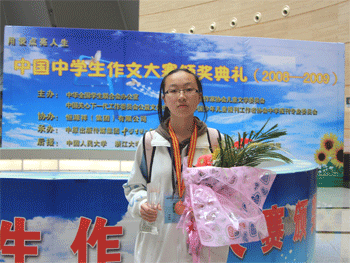 4月17~19日,2008-2009年中国中学生作文大赛总决赛在河南郑州举行,澳门网上博彩初0810班温心怡同学经过层层筛选,通过“听、说、读、写”测试,最终以《妈妈的幸福》一文夺得最高奖——“恒源祥文学之星”奖,成为北京市7名参赛选手中唯一荣获该最高奖项的选手。全国共有3000万选手参加此次作文大赛。