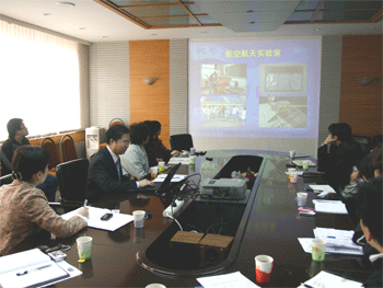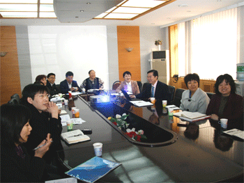 王殿军校长向调研组汇报学校科技活动情况 王殿军校长(右3)等与调研组成员座谈