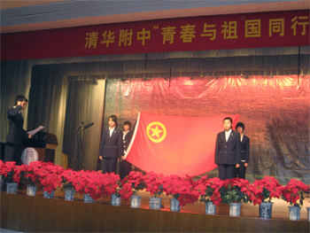 大团会以高08级激情澎湃的开篇诗朗诵《青春之魂》拉开序幕。刘俊副校长代表学校在团会上致辞,周兆玉副书记宣读了07—08学年度校级甲级团支部、十佳团员、优秀团干部和优秀团员名单。到场各位领导为获奖班级和个人颁发了证书。参加区级、校级业余党校的同学还光荣地领到了党校结业证。高0807班范宣子同学代表优秀团员发言,全体新团员面对团旗进行了庄严的宣誓。最后,大会在高昂的团歌声中结束。