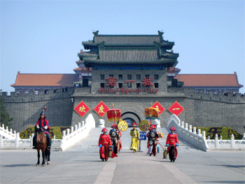 “第一城”坐落于京、津、冀交界地带──河北省香河经济技术开发区,是一座融旅游观光、休闲度假、娱乐健身、美食购物、影视拍摄、会议展览等多种功能于一体的国家4A级旅游景区。这里仿照明清时期北京都城的风貌,复原了老北京“内九外七”的城垣格局;建造了22座错落有致的城楼、具有浓郁中国传统文化风格的建筑群和独具匠心的皇家园林组成的景园。外城东区为圆明胜景区,体现了中式皇家园林的风范;外城西区以王府、四合院为代表的建筑尽显六朝古都风貌;“前门”商业街坐落在两区之间。巍峨壮观的标志性建筑正安宫、金碧辉煌的中华佛教艺术博物院、古色古香的楼台亭榭、碧波荡漾的湖泊河水,构成了第一城千姿百态的画卷。