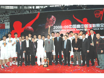 2008-09中国高中男子篮球联赛总决赛比赛现场 甘北林、王殿军(右)为张涛(中)颁发最佳教练员