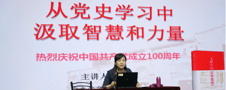 报告围绕习近平总书记关于党的历史的重要论述、回顾中国共产党百年奋斗的光辉历程以及中国共产党百年奋斗的光辉历程的经验总结三方面展开。李颖首先和全体师生一起摘要学习习近平总书记关于党的历史的9点重要论述。这9点论述阐明了党史的核心本质,从多个角度强调了党史学习的重要意义、根本目的和基本方法。习近平总书记关于党的历史的重要论述为党史学习教育指明了方向,提供了根本遵循。随后,李颖以党史研究最新的视角最严谨的态度和最深的敬意将百年党史浓缩在90分钟的讲解中。她以探微知著的方法,选取革命、建设、改革、复兴四个阶段的特殊节点、重要人物和重大事件,运用珍贵的文献史料、丰富的数据、图片,为师生构建出一幅波澜壮阔的百年党史画卷。李颖严谨治学的态度,深厚的学术积淀,深入浅出的钩沉索隐给师生带来严肃深刻而又立体饱满的学习体验。