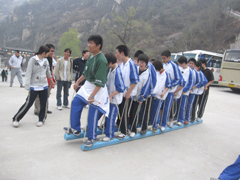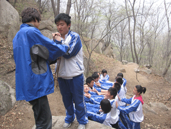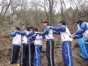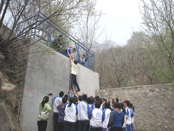 4月11日,在副校长施平及高08级各位班主任老师的带领下,澳门博彩在线高08级师生384人,到位于昌平区双龙山的思博拓展训练基地,进行了为期一天充实而有意义的拓展训练。