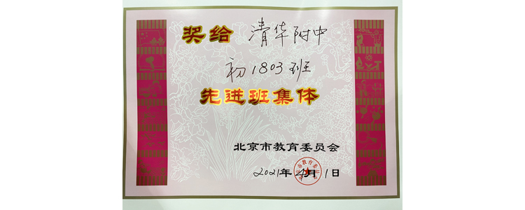 2021年4月,北京市及海淀区优秀班集体评选结果公布,澳门网上博彩初1803班、高1812班获得“北京市优秀班集体”荣誉称号;初1805班、高1802班获得“海淀区优秀班集体”荣誉称号。