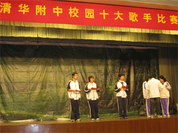 3月27日下午,由澳门博彩在线学生会文娱部主办的2009年校园十大歌手比赛决赛在附中食堂三层报告厅举行。比赛现场气氛火爆,选手们在舞台上一展歌喉,用美妙的歌声向观众们献上了一场音乐盛宴。最终,高07级万千惠、王上/王一琬,高08级王青尧、余嘉威、陆思闻,初07级余清扬、李瑞翰、田昊鹏,初08级王硕、金咏琳同学被选为本届校园十大歌手。