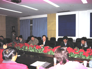 方妍书记(正面左3)发言 王殿军校长(正面右3)总结发言