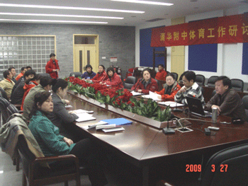 方妍书记在发言中指出,中学体育教学的定位应该是通过体育教学和课外活动的开展增强学生体质、教会学生体育运动的相关知识和技能,培养学生对体育运动的兴趣,为今后健康的工作生活奠定基础。学校体育工作的核心是发展每个学生,使每个学生受益。方书记充分肯定了体育组教师的工作成绩,同时,希望体育组能够加强团队意识,立足常规体育教学,在新课程改革的形势下,积极的心态面对挑战,重视教学与科研相结合,逐步形成附中体育工作的特色。