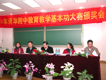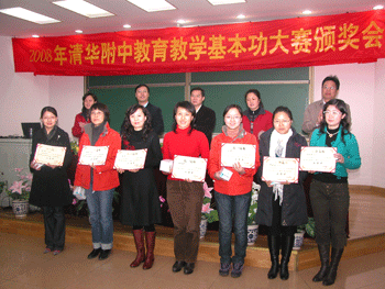 本次比赛分为组内评选、学校比赛、宣传表彰三个阶段进行,首先由各教研组组织本组全体青年教师进行说课比赛,推选出参加学校比赛的青年教师开一节校公开课。共有11个学科、16位教师在全校6个年级开公开课,学校选派了以教研组长、特级教师和市学科带头人为主的25位评委进行听课、评分。最终,教学基本功评出教学语言、板书绘图、课件使用、演示实验四个单项奖和综合全能奖;教育基本功评出教育风采、班会设计、非现任班主任组优秀奖三个单项奖和综合奖。评奖结果如下: