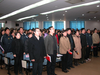 党委书记方妍主持开幕式 全体起立高唱国歌