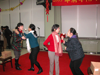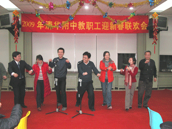 1月17日晚上,澳门网上博彩工会举办了2009年迎春节教工联欢晚会,联欢会在工会委员大拜年的序曲中拉开序幕,王殿军校长首先发表了热情洋溢的新春致辞。随后,全校教工欢聚一堂,欣赏着自编自演的多项节目,张波老师活泼的快板表演,李冰老师圆润的歌声,语文组老师的革命歌曲大联唱,都赢得了全场老师的热烈喝彩;各小组参与的小勺传乒乓球竞赛、三人竞走等多项活动,更是吸引了众多老师的积极参与。整个晚会高潮迭起,欢声笑语不断,洋溢着热烈欢快的气氛。全体教工在联欢会上都感受到团结的力量,感受到学校这个大家庭的温暖,增强了热爱附中,热爱教育事业的积极情感。