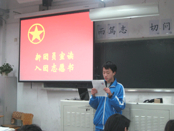 新团员宣读入团志愿书 新团员进行入团答辩