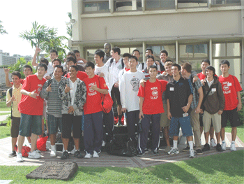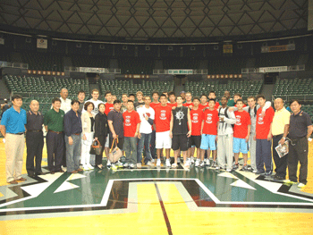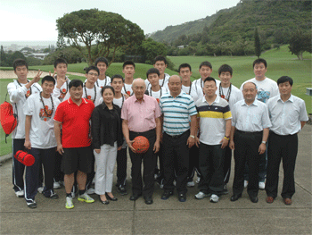 澳门博彩在线队员与夏威夷大学男篮队员合影 澳门博彩在线队员与Iolani中学学生合影