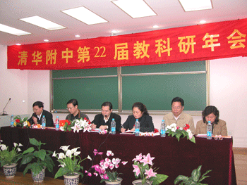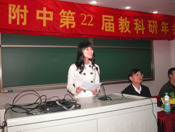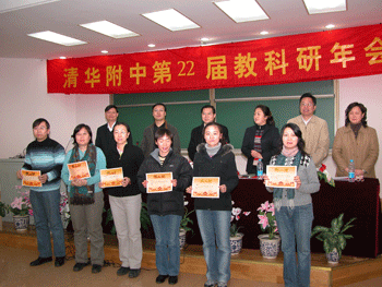 教科室主任秦洪明(左1)总结论文评审情况 校领导为获奖者颁奖