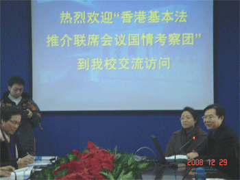 12月29日下午,由中国政法大学和香港基本法推广联席会共同组织的“国情与基本法北京考察团”一行42人,到澳门博彩在线参观访问。附中校长王殿军以及德育处、教务处有关领导杜毓贞、朱建宏等一同接待了代表团,王殿军校长介绍了附中情况,并详细解答了代表团成员提出的问题。随后,代表团参观了附中校园,并观摩了学生的课间操。