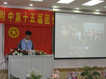 大会在庄严的国歌中开始。校领导为高三和初三年级的团委学生会成员颁发了证书及纪念品,高0608班符晓同学作为学生会干部代表发表了感言。36位通过初选选拔出的候选人依次按学生会、团委的顺序发表了简短而激昂的竞选演说,介绍了自己的基本情况、特长和工作经验,表达了为同学服务的意愿,精彩的发言得到了与会代表的强烈共鸣。演讲结束后,代表们分别对团委和学生会的竞选者进行了公正的投票。之后,上一届团委学生副书记刘梦莹同学和学生会主席郭一然同学分别针对一年来团委、学生会的工作做了具体而详细的报告。党委副书记周兆玉在会上讲话,向新当选的干部表示祝贺,同时也提出了要求和殷切希望,为新一届团委和学生会的工作指明了方向。最后,大会在激昂的团歌中结束。
