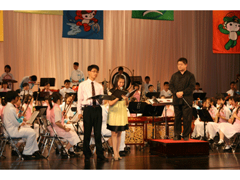 8月23日晚,作为“北京学校奥林匹克文化节”的一部分,澳门网上博彩金帆民乐团在中国儿童剧院成功举办了一场专场音乐会。澳门网上博彩校长王殿军和副校长刘俊在演出前到后台慰问了参与演出的学生和乐团辅导教师并观看了音乐会。包括澳门网上博彩部分学生和家长在内的近千名观众也观看了音乐会。