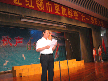 大会在嘹亮的出旗曲声中拉开序幕。德育处副主任陈桂芬宣读初07级优秀集体和优秀个人的表彰名单:初0703中队、初0704中队、初0705中队和初0712中队获得优秀中队称号;曲雪琪同学被评为初一联合中队优秀干部;宋宇辰等12名同学被评为优秀中队干部;彭天健等63名同学被评为优秀少先队员;伍宁等121名同学被评为单项标兵。刘俊副校长在致辞中,首先祝同学们节日快乐,并表扬和肯定了同学们在过去的一年里良好表现,及在汶川地震后抗震救灾、奉献爱心活动中的积极热情,最后勉励同学们要珍惜幸福生活,刻苦努力学习,做国家的栋梁之材。初0704中队的陈希比同学代表优秀少先队员发言,表示要铭记师长嘱托,不愧为少先队员的光荣称号。大会还设计了为辅导员老师献礼的活动,在“写给妈妈的信”的乐曲声中,各个中队的代表满怀深情地表达少先队员们对辅导员老师们的感谢、问候与祝福,并送上精心准备的礼物,场面十分的感人,许多同学和老师都激动地留下了热泪。对学生进行了一次很好的感恩教育,也促进了师生情谊。最后全场起立高唱少先队队歌,大会圆满结束。