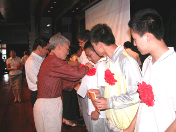 会上,12个班级分别用自己精心制作的PPT展示了三年的初中生活和成长足迹,辅以娓娓道来的解说和抒情优美的背景音乐,令与会者看到了每个班级的个性风采和澳门网上博彩学生良好的精神风貌。在之后的表彰环节,由学生家长和老师登台为获奖的孩子佩带大红花、颁发奖状,场面非常壮观。台上台下充盈着喜悦与骄傲。