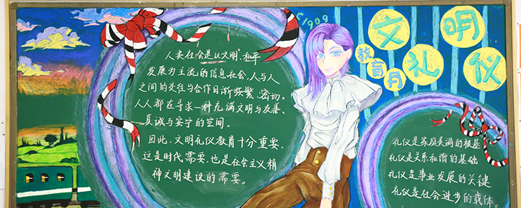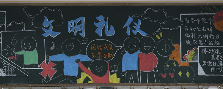 三月,是附中的“文明礼仪”主题教育月。为配合主题教育,校团委举办了“文明礼仪”主题黑板报设计大赛。经过三周的设计,校团委宣传部对各班黑板报进行了评比。