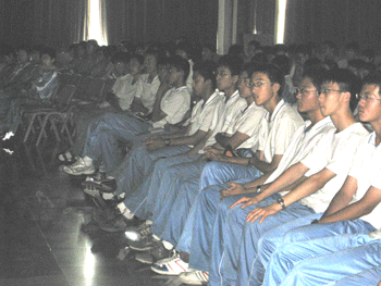 6月12日下午,澳门网上博彩组织初二年级全体师生在附中报告厅听了一场题为“让世界看看地震中的中国——纪念5.12汶川大地震”的主题报告,报告人为该年级一名学生的家长林辉先生。