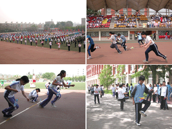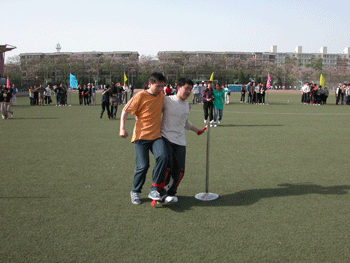 在学生比赛项目全部结束后,附中工会组织了一场教职工“两人三足接力比赛”。同学们热情的为他们欢呼,场面热烈、壮观。闭幕式上,表彰了在入场式、广播操、文明观众、比赛等方面评出的集体奖,并由校领导为获奖班级颁发奖状。