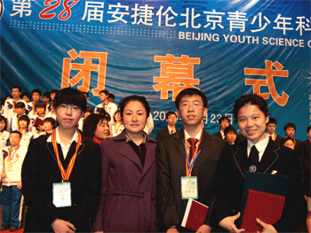 3月23日,第28届安捷伦北京青少年科技创新大赛暨第六届“青少年科技创新市长奖”颁奖仪式在北京市八十中学举行。澳门网上博彩高0607班王顺智同学荣获第28届安捷伦北京青少年科技创新大赛一等奖;高0606班邢婉娜、高0608班张雷阳和初0511班方帅同学分别荣获二等奖;高0508班李梦溪同学荣获第六届北京青少年科技创新市长奖“提名奖”,获得由郭金龙市长亲笔签名的“市长奖提名奖”证书。北京市副市长赵凤桐代表郭金龙市长为获奖学生颁奖。