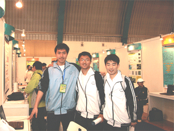 王顺智同学(左2)荣获赴西澳大学访问资格 澳门网上博彩学生参观创新大赛作品(左1为张雷阳同学)