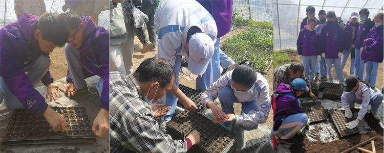 短暂的午休之后,同学们回到田间,跟随农学辅导员学习“育苗”。在闷热的温室大棚里,同学们聚精会神地观看农学辅导员演示“育苗”的要领,在育苗箱里填土、放置种子、浇水等等,不忽视任何一处细节。同学们在操作时也是非常严谨小心,严格按照流程来进行。初2003班的孙基翔同学说:“每一个种子就是一个小生命,农民伯伯“孕育”这样的小生命非常辛苦,我会认真的对待这次课程和生活中的粮食。”