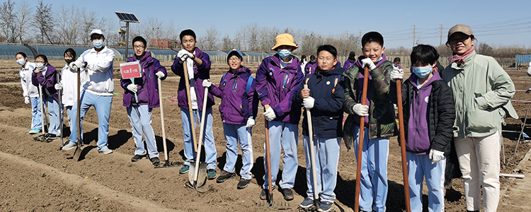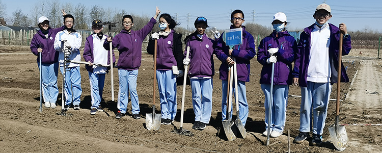 3月21日早晨8点,在王田主任、年级组长张晓明老师、班主任老师们的带领下,在家长志愿者的陪伴下,经过1个小时的车程,同学们准时来到学农基地。大家在农学辅导员的带领下“认领”土地,并观看了田间指导员的亲身示范,之后便迫不及待地带着“工具”上岗劳作。