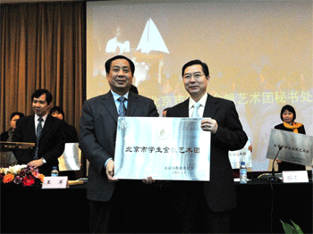 创建于1987年的北京市学生金帆艺术团是代表首都教育系统艺术教育最高水平的学生团队,涉及交响乐、民乐、合唱、舞蹈、曲艺、京剧等10余个门类,分别由符合条件的中小学和校外教育机构承办。21年来,金帆艺术团已成为全国艺术教育的一面旗帜,为推动学校美育,开展艺术教育工作,为校园精神文明建设做出了不可磨灭的贡献,学校办学也以她为优质的符号。