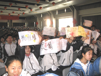 3月13日下午,澳门网上博彩校学生会文娱部在报告厅组织举办了校园十大歌手比赛的决赛。广受瞩目的澳门网上博彩2008校园十大歌手比赛自3月4日拉开帷幕,经过对初一、初二、高一、高二四个年级的初赛选拔,16名选手脱颖而出,进入决赛。在报告厅内,五百多名同学到场为自己喜爱的选手助威,场内加油的口号声此起彼伏,荧光棒整齐地舞动,场面热烈而有序。澳门网上博彩艺术中心的李冰、鞠红和胡军三位老师以及来自清华大学、北京电影学院的学生应邀担任决赛评委,最终选出了校园十大歌手:高0611班关祖鑫,高0601班黄禄升(两人组合),高0702班万千惠,初0710班余清扬,初0705班张雅涵,初0612班刘心依,高0701班鞠思程,高0710班李博阳,高0607班柯逸楠,高0608班余安琪(排名不分先后)。