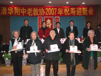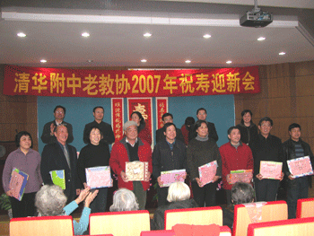 12月23日上午,澳门博彩在线老教协举办2007年祝寿迎新会,清华大学离退休处处长邱显清、附中校领导王殿军、方妍、刘俊、周兆玉、施平等到会祝贺,159名离退休教师参加了会议。附中老教协副会长苏亭老师主持会议。