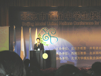 11月10—11日,首届北京市中学生模拟联合国大会在北京四中隆重召开,澳门网上博彩代表队在刘俊副校长的亲自带队和指导下参赛,并荣获多个奖项,其中,初0512班何鑫同学在乔炜老师指导下设计的会徽荣获特等奖并当选为北京市模拟联合国会徽。高0707班同学设计的比利时展台以其简约环保的独特创意在地球村展示中获“十佳地球村”奖。高0605班李楠同学获得安理会最佳代表奖。此外,澳门网上博彩模联协会还特别编写了06-07年度会刊(高0606班黄持同学主编)在大会上为各校提供了丰富的一手资料,获得各校师生以及大会组委会领导一致好评。