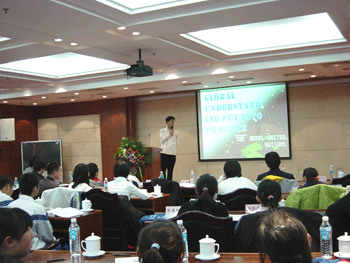 第三届可持续发展教育(ESD)国际论坛会场 g0607班郭一然同学在ESD国际论坛学生分会场演讲071116