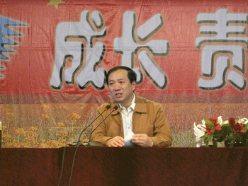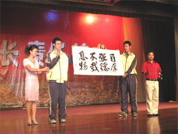 教育部思政司司长杨振斌教授做励志报告 北京市残疾人艺术团赠字幅“自强不息,厚德载物”