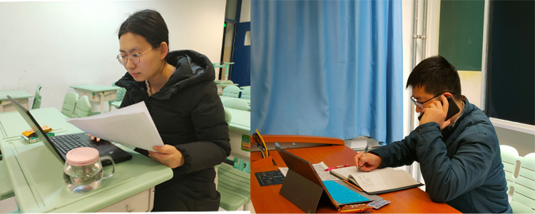 左:班主任线上家访 右:学科教师与学生点对点谈话