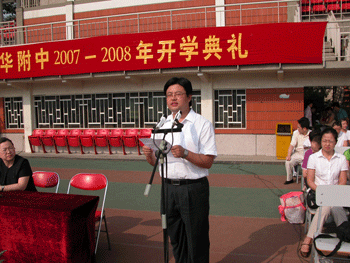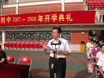 9月1日上午,澳门博彩在线在操场上举行2007-2008学年开学典礼,清华大学副教务长陈刚应邀出席,澳门博彩在线党政领导以及全校师生员工参加了大会。大会由教务主任赵鸿雁主持。