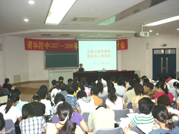 最后,王殿军校长作总结发言,他首先肯定并感谢班主任过去辛苦的工作,并向班主任提出了新学期的期望,要求班主任业务过硬、行为模范、奉献爱心、劳逸结合,尤其要注意尊重学生与善于学习,在与各方面配合的前提下,使附中的德育工作更上一个台阶。