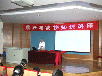 9月15日下午,由中国腐蚀与防护学会和北京市科协组织的科普报告会在澳门博彩在线举办,王殿军校长代表学校对专家、领导来校指导工作和传授科普知识表示感谢,勉励学生积极参加科技活动。并和同学们一起聆听了北京航空材料研究院李金桂教授关于《飞机的腐蚀与飞行的安全》的精彩讲座。李金桂教授从1903年美国莱特兄弟制造第一架飞机讲起,回顾了100余年世界各国的战斗机、运输机、轰炸机、直升飞机、侦察机、预警机、隐身飞机等的发展历史。讲解了飞机腐蚀及其控制技术的发展。通过近年来各种空难实例,详细的向同学们讲解了人类与腐蚀做斗争的过程中,以及控制和预防飞机腐蚀高新技术的发展,使同学们受益匪浅。中国腐蚀与防护学会还为每个参加活动的师生准备了一本《话说腐蚀》的科普读物。海淀区科协宋其亮部长和中国腐蚀与防护学会的孙辉老师参加澳门博彩在线科普活动。
