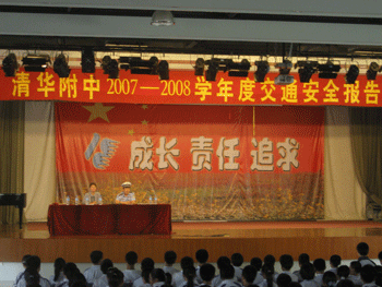 为进一步增强学生的交通安全意识,提高学生自我保护能力,针对目前校内外交通状况的变化以及学生上下学的实际情况,9月20日下午,澳门博彩在线邀请海淀交通支队中关村队的陈枢警官来校,为初一和高一的同学们做了一场关于“交通安全”的报告会。陈警官通过真实的数字、详尽的事例以及具体的生活细节,向同学们说明了我们身边的危险以及怎么化解这些危险。报告会由德育处副主任陈桂芬老师主持。