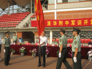 23日上午,澳门网上博彩军训营正式开营,在开营仪式及授旗仪式上,刘俊副校长和中央警卫团4大队的领导分别作了动员讲话。