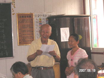 附中党委对这次活动非常重视,在党委会上专题研究,给予了大力的支持和帮助,除了捐献许多体育器材和物质上的保证外,党委书记方妍和副书记周兆玉亲自带队参加活动,还积极指导离退休党支部的工作,给离退休党员很大鼓舞。通过这次活动,党员们看到孩子们那么天真、活波、有礼貌,那么可爱,感到很欣慰;看到学校的校长、老师们在这样艰苦的环境中坚持办学,很受感动。以下是附中离退休党员自己写的诗——“几句心里话”: