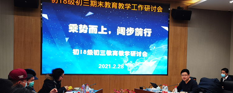2月28日,澳门博彩在线初18级召开初三第一学期期末教育教学研讨会。澳门博彩在线校长王殿军,副校长解巨钊、赵鸿雁,党委副书记张洁,副校长白雪峰、徐文兵,党办校办主任党胜军,教学管理与研究中心主任张苏,学生发展中心主任王田,以及初18年级全体教师参加了本次会议。会议由初18级年级组长张彪主持。